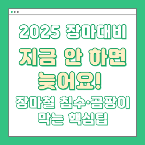 "장마는 매년 오는 자연현상이지만, 그 피해는 매년 다릅니다. 지금 당장 점검하고 준비한다면 가족과 집을 지킬 수 있습니다. 부담 없이 실행 가능한 것부터 시작하세요!"