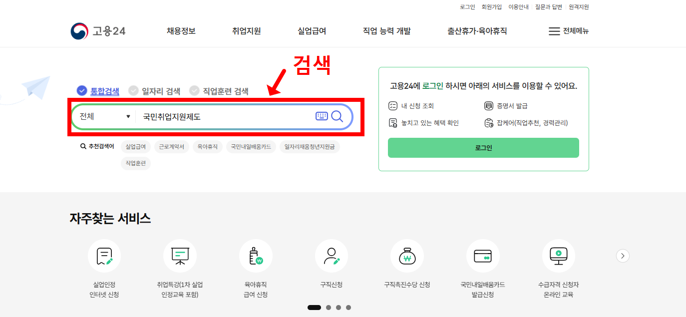 - 고용24 또는 고용복지플러스센터 접속
