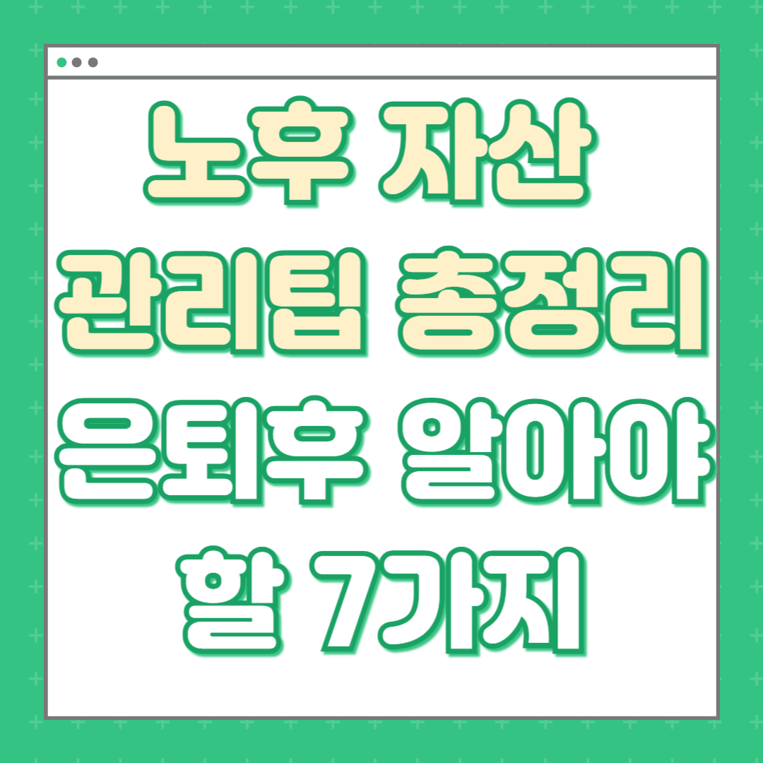 50~60대를 위한 현실적인 자산 관리 전략! 은퇴 후 돈 걱정 없이 살고 싶다면 지금부터 준비가 필요합니다. 안정적인 노후를 위해 꼭 알아야 할 핵심 팁 7가지를 소개합니다.