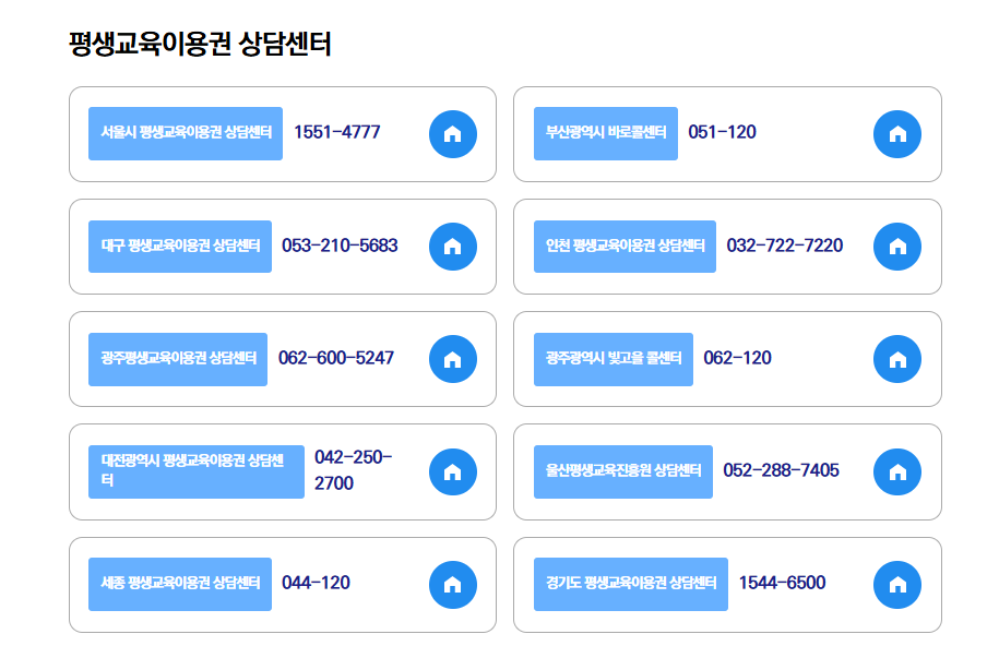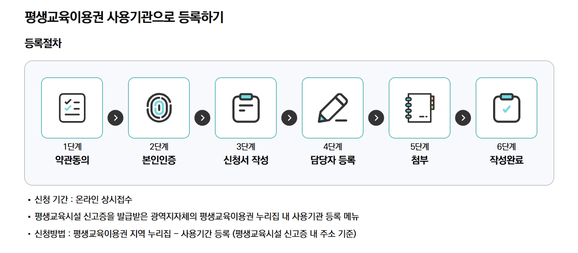 - 지역 평생학습기관, 문화센터, 온라인 교육기관 사용 가능