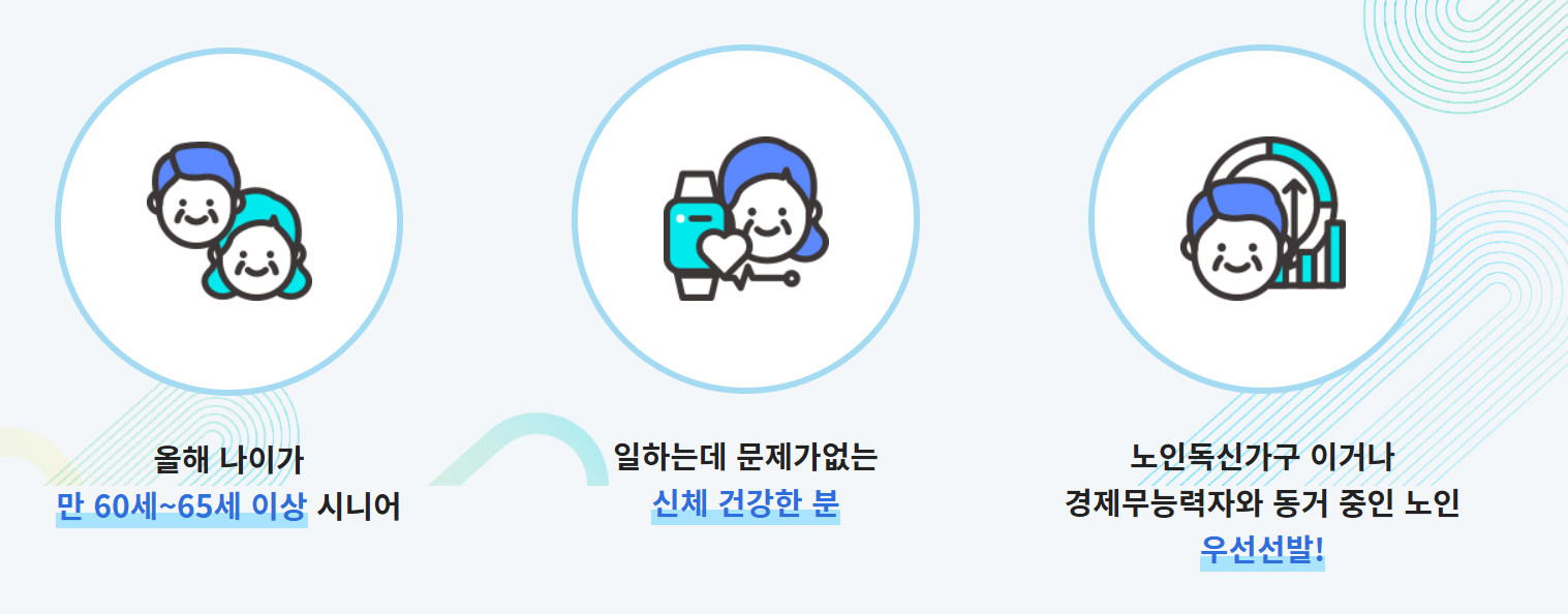 - ✔️ 기초연금 수급자, 취약계층, 독거노인 등 우선 선발 대상
