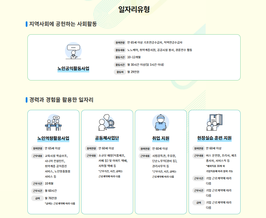 💼 시니어 일자리 지원 센터에서 제공하는 일자리 유형