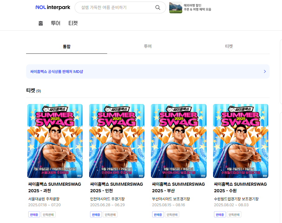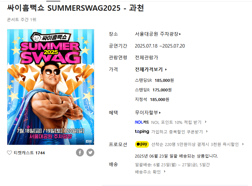 1. 싸이 흠뻑쇼 예매 정보