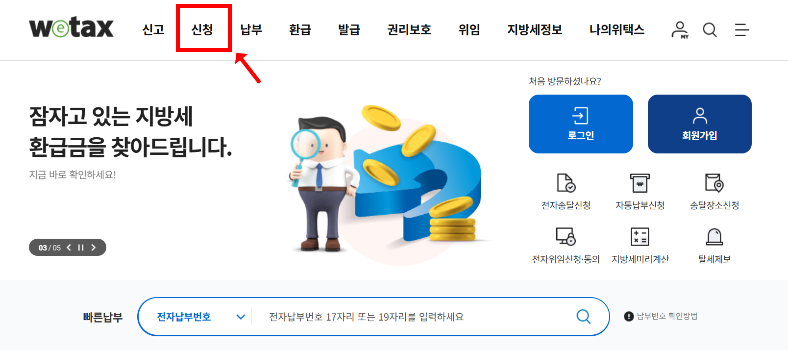 - 로그인 → [My WETAX] → 납부내역 조회