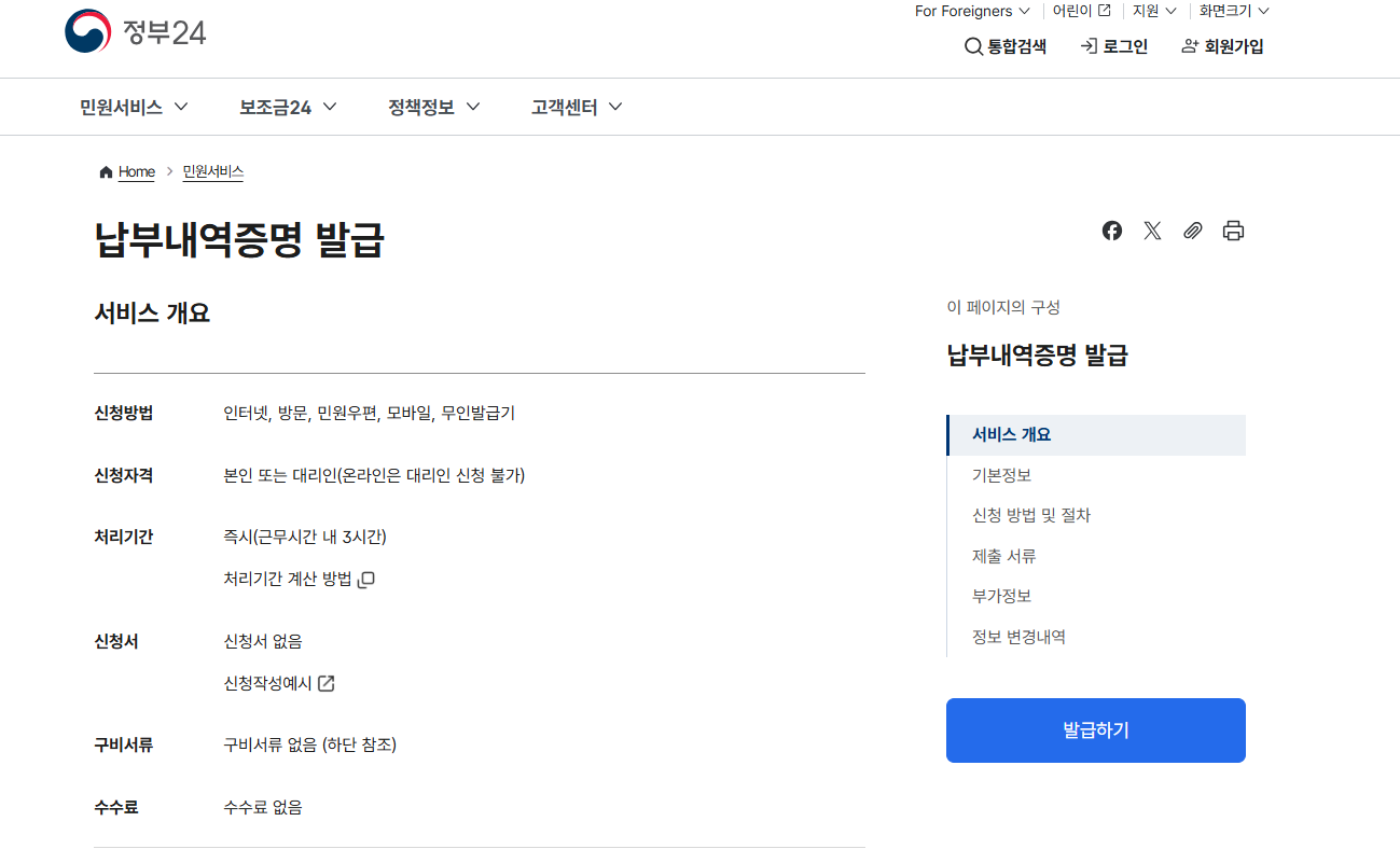 - 정부24 또는 주민센터에서 발급 가능