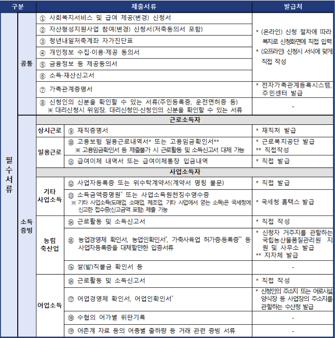청년내일저축계좌 신청 서류