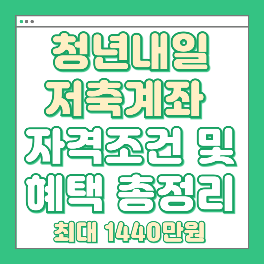 청년내일저축계좌는 정부가 청년의 자산 형성을 지원하기 위해 마련한 정책 금융상품입니다. 근로 청년이 매월 10만 원을 저축하면 정부가 추가로 지원금을 적립해주며, 3년간 유지 시 최대 1,440만 원을 받을 수 있습니다.