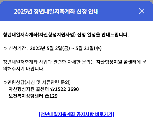마무리 TIP: 청년내일저축계좌는 단순한 저축이 아닌, 정부가 인정한 자산형성의 첫걸음입니다. 오늘의 근로가 내일의 재산이 됩니다. 지금 바로 자격 확인하고, 신청 준비를 시작하세요!